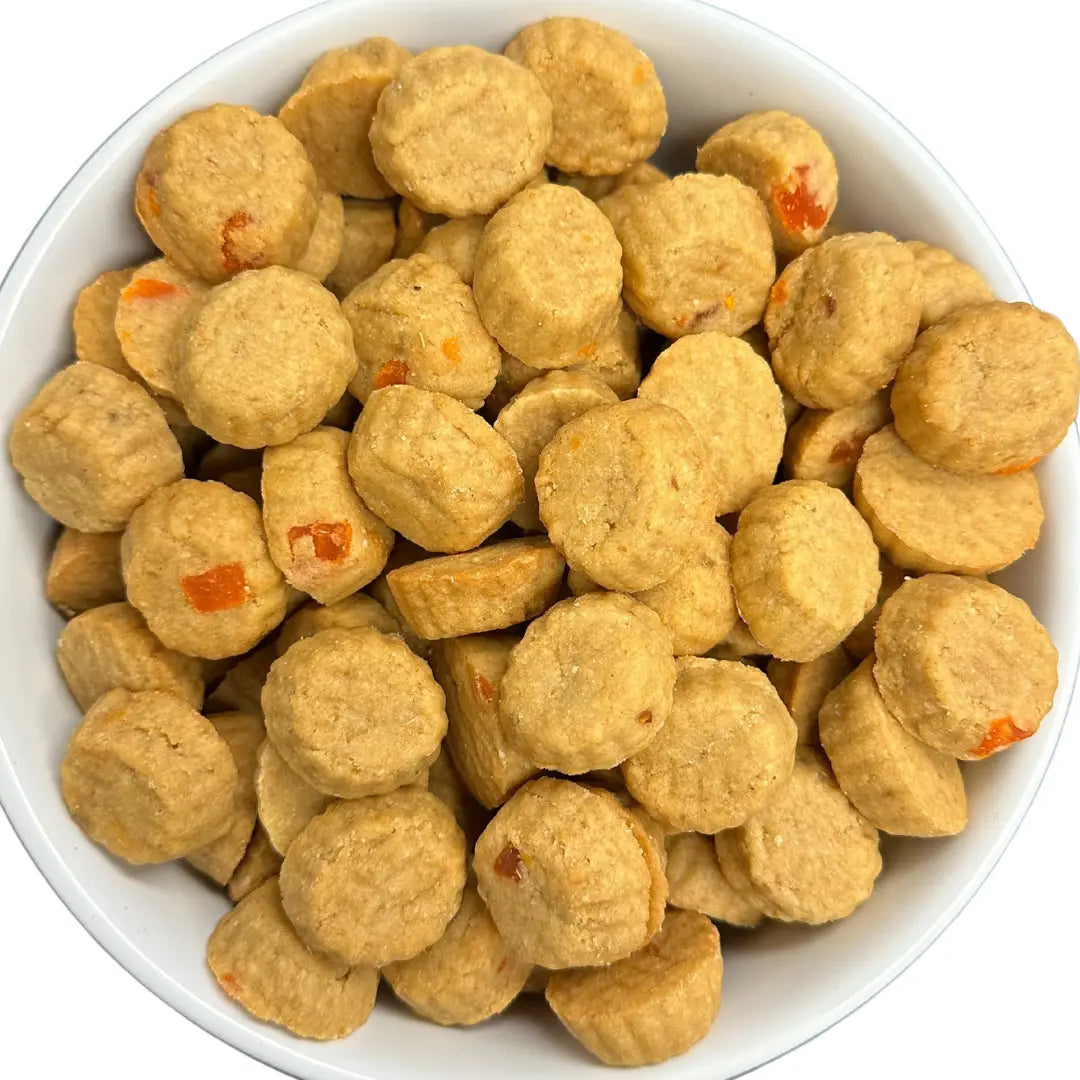 Guaranteed Analysis: Crude Protein ..12% min Crude Fat ..8% min Crude Fiber .. 3% max Moisture ..8% max Calorie Content: (Calculated) ME: 3,600 kcal/kg ... 5kcal/treat